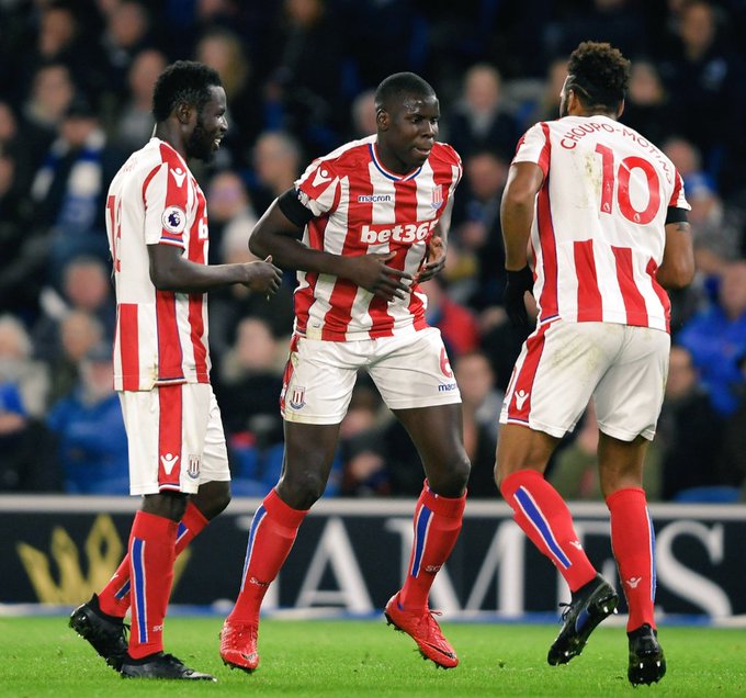Kurt zouma got his first goal at the brighton home yesterday, as his loan team, stoke city, beat won the match with a goal.